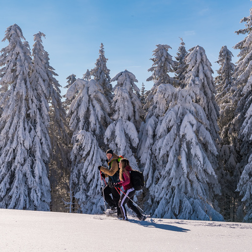 Schneeschuhtouren können individuell geplant werden. Unsere Schneeschuhtrails sind für Sie ausgeschildert. Schneeschuhe zum Leihen gibt es hier: Tourist-Information Schönau