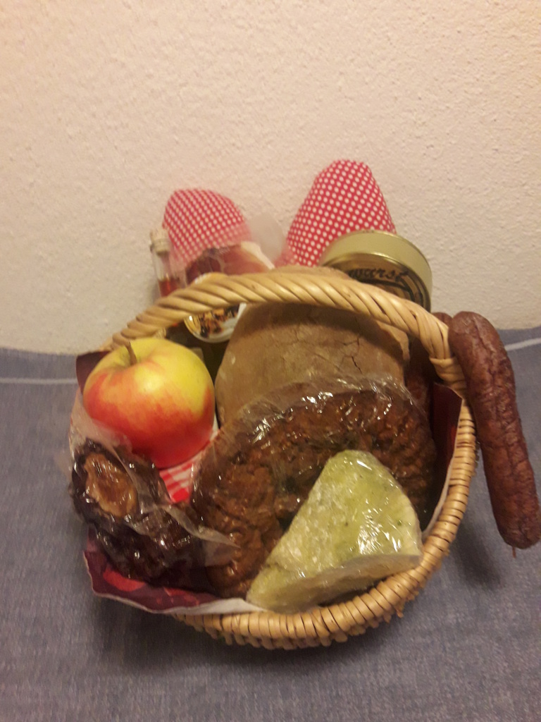 Auf Vorbestellung erhalten Sie bei uns ein Aufenthaltskörbchen. Teilen Sie uns einfach vor Ihrer Anreise mit, ob wir Ihnen einen Aufenthaltskorb zum Preis von 25,00 € (inklusive Korb, ohne Korb 21,00 €) bereit stellen sollen. Der Korb beinhaltet folgende Produkte: